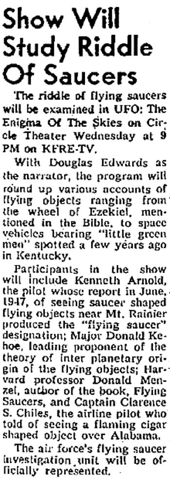 CBS TV Show to Examine Saucers